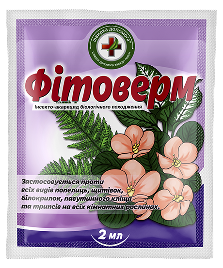 Фітоверм – інсекто-акарицид біологічного походження, який застосовується на кімнатних рослинах проти всіх видів шкідників: попелиць, щитівок, білокрилок, павутинного кліща та трипсів.