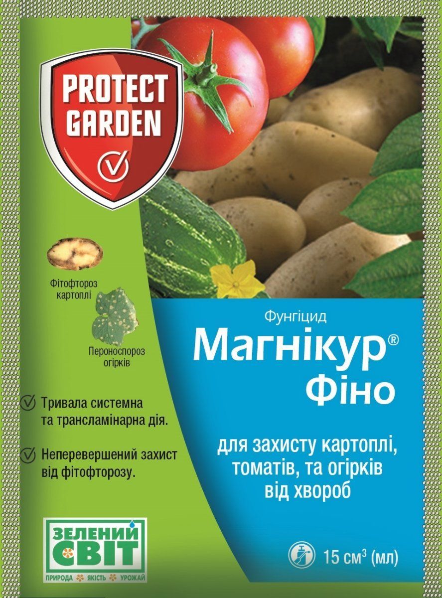 Магнікур Фіно (Інфініто) – високоефективний інноваційний фунгіцид подвійної дії – надійно захищає посадки томатів і картоплі від фітофторозу, а огірки від несправжньої борошнистої роси, а також має властивості стимулятора росту рослин