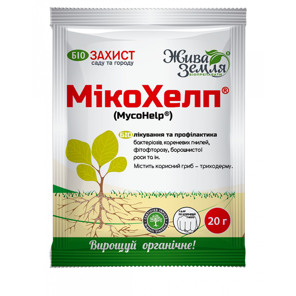 МікоХелп – багатокомпонентний біопрепарат на основі грибів та бактерій для профілактики та лікування бактеріальних та грибних хвороб рослин. Пригнічує розвиток фітопатогенів на ранній стадії, тим самим захищаючи рослину від кореневої, плодової та стеблової гнилі.