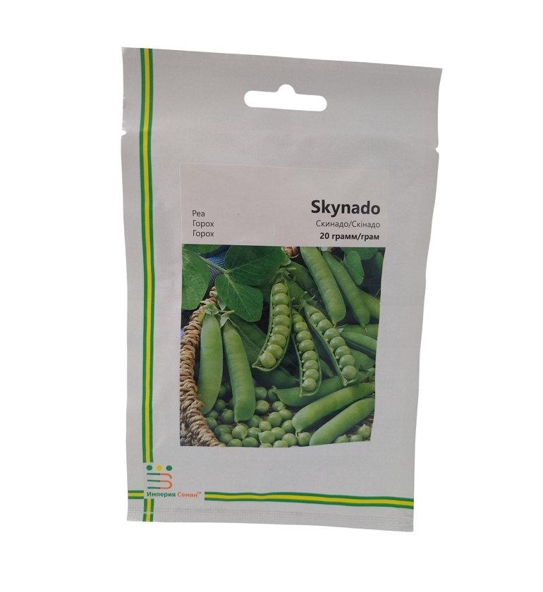 - Горох Скінадо – сверхурожайний, середньопізній сорт (тривалість вегетації невелика, близько 65 діб).