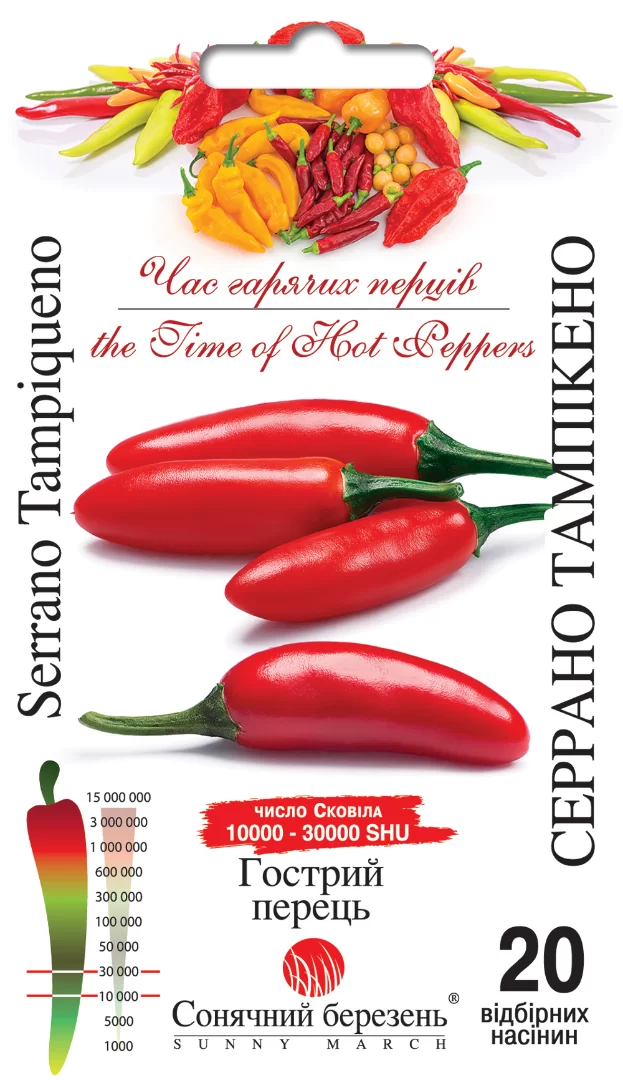 Насіння перцю гострого Серрано Тампекіно/20нас/Сонячний березень